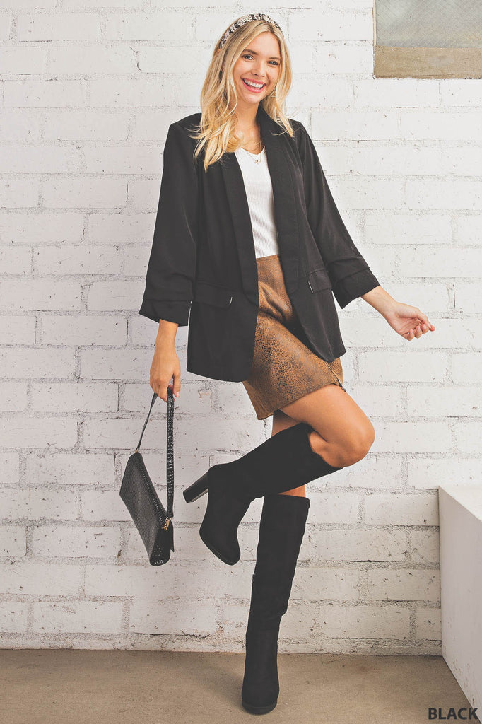 This open blazer is perfect for bringing a bit of wild style to your wardrobe! Featuring an eye-catching animal print lining, it'll liven up any outfit with a touch of glamour and quirk. Get ready to roar with style!