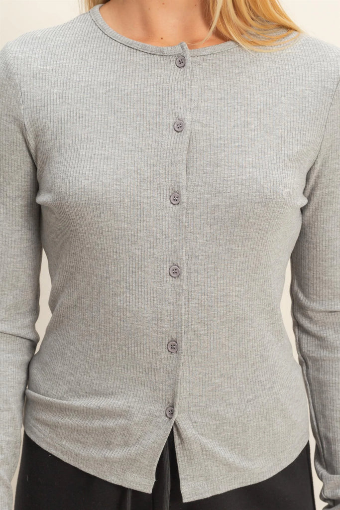 Embrace versatility and style in this sleek, ribbed knit top. Featuring a smooth button-front closure, this top is a wardrobe staple for layering excellence or a stand-alone statement. Pair it with denim for a casual look, or tuck it into a skirt for evening elegance. With its snug silhouette, it promises style and comfort in any setting.