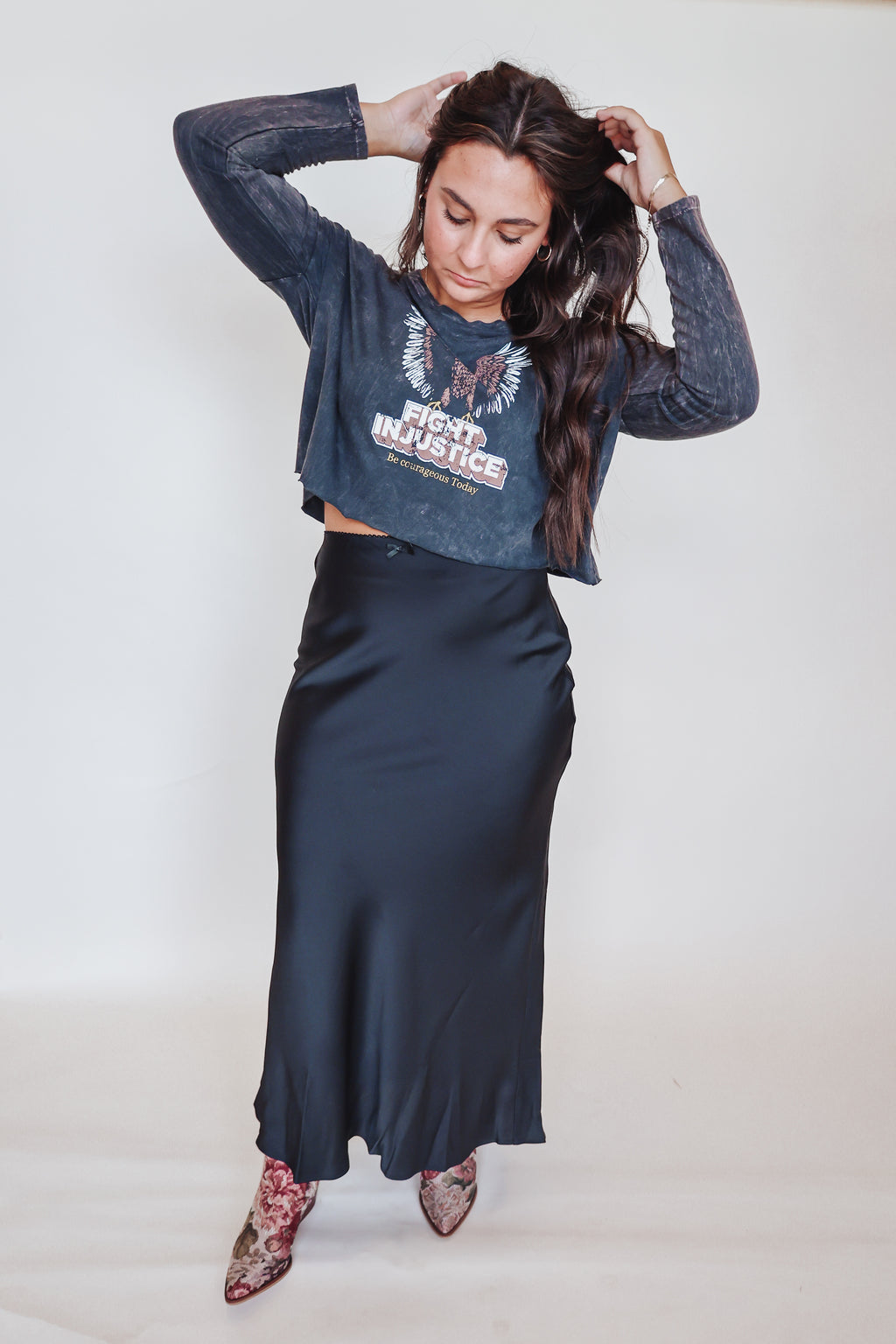 This mid-length skirt boasts a sleek, flowing silhouette that dances with every step. Perfect for both laid-back afternoons and chic evenings, it pairs effortlessly with a snug top or a cozy oversized sweater. Transition through seasons in style by teaming it with ankle boots or sandals—your new go-to for endless playful looks!