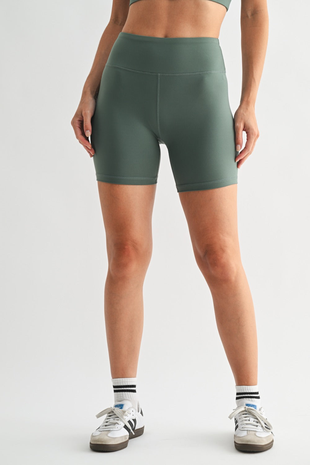 The Newport Biker Short is built for movement with a sleek, minimal design. Featuring a smooth fold-over waistband with no elastic and no side seams, these shorts offer a streamlined, second-skin feel. Crafted from a soft, stretchy polyester-spandex blend with a 6" inseam, they’re perfect for training, lounging, or everyday wear.