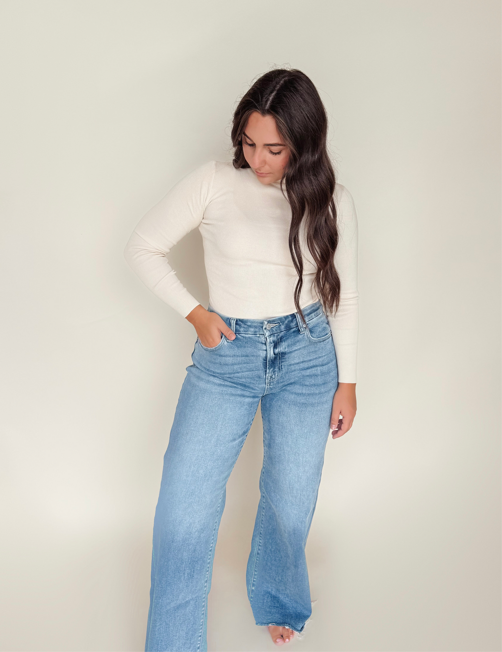Cozy up in this playful pullover sweater featuring a chic mock neckline and snug fitted silhouette. The long sleeves and soft sweater knit make it the perfect companion for cooler days, keeping you warm while adding a touch of cute sophistication to any outfit.