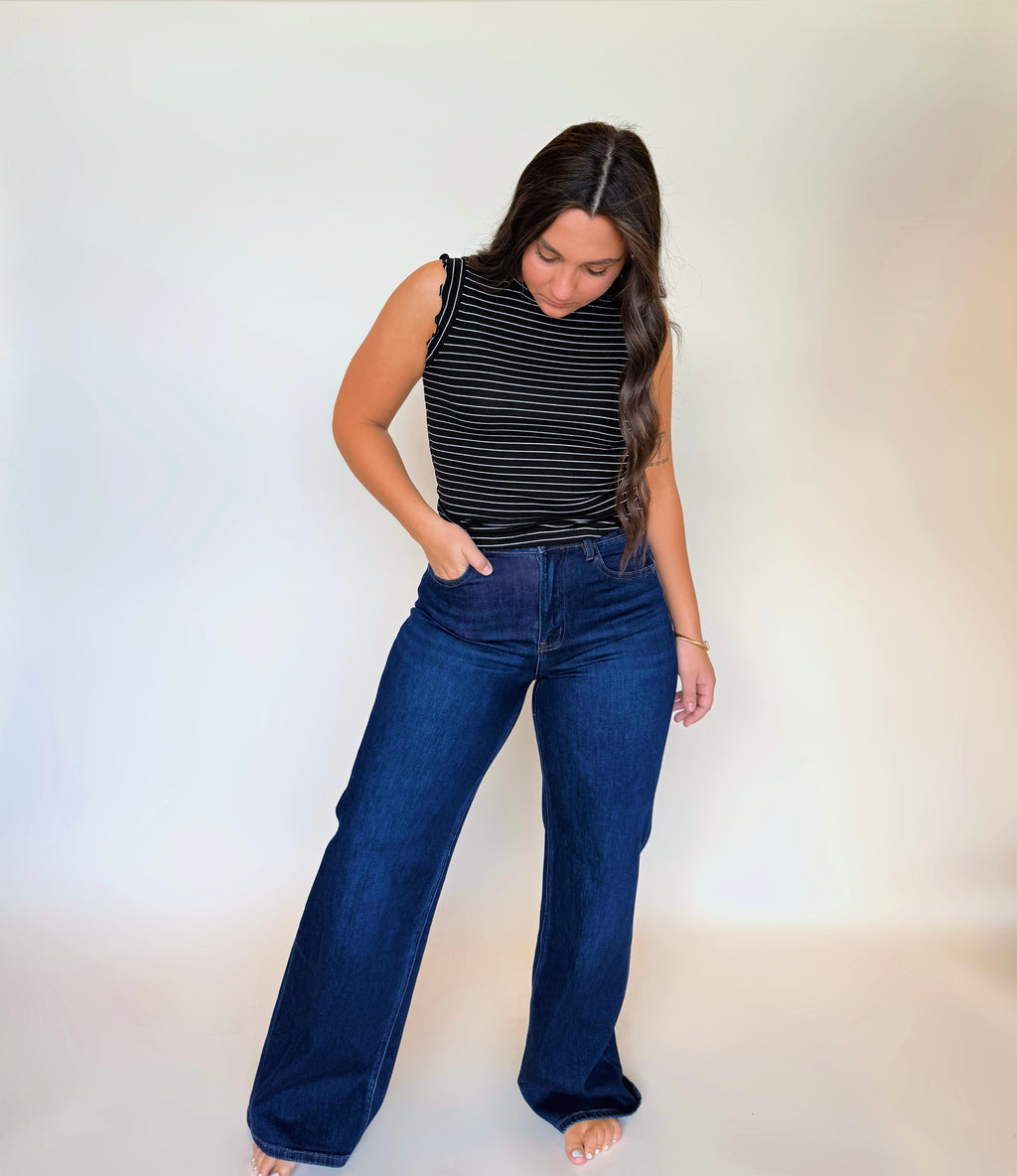 These super high rise wide jeans blend comfort and style effortlessly. Made from stretchy denim, they hug your waist perfectly, giving a flattering high-rise fit. The full-length cut with a finished hem adds chic sophistication, while the wide leg offers a fun, breezy vibe for all-day wear. Perfect for making a bold, playful statement wherever you go!